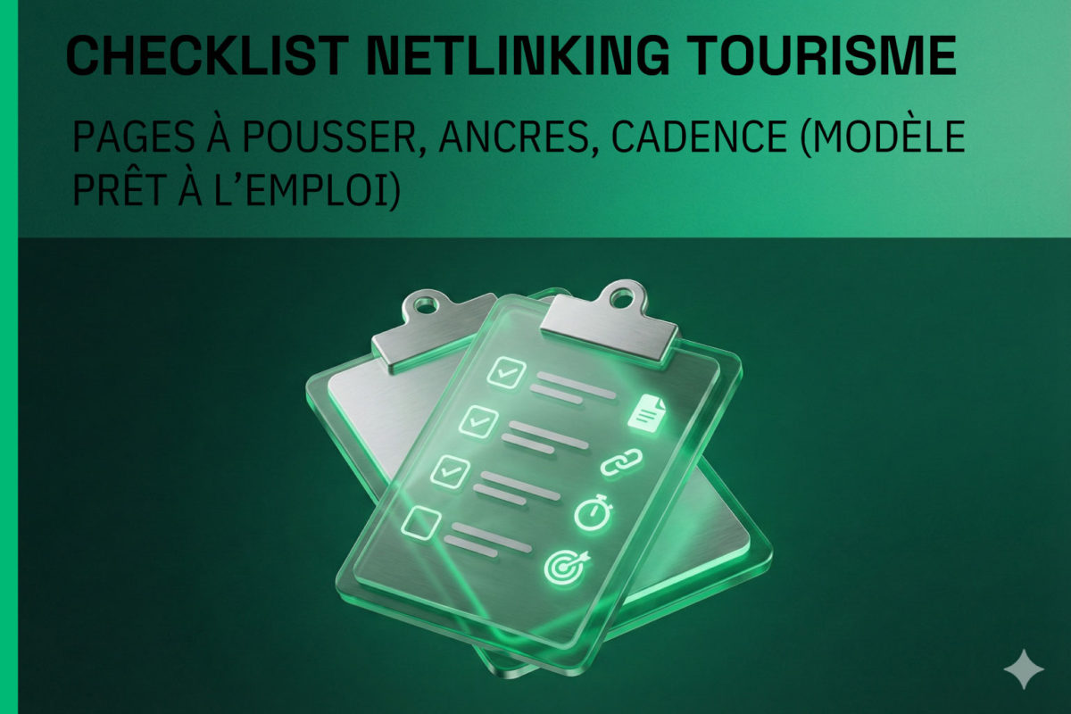 Checklist netlinking tourisme : pages à pousser, ancres, cadence (modèle prêt à l’emploi)