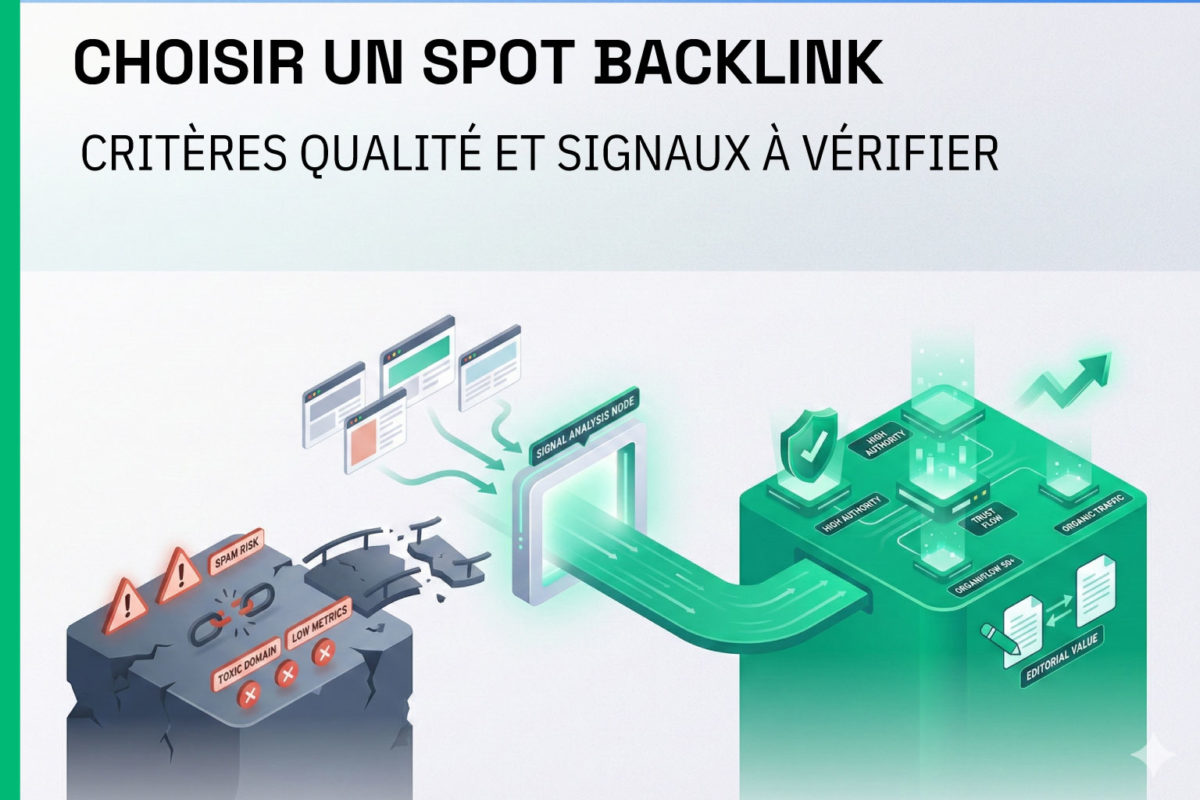 Un bon backlink ne dépend pas uniquement d’un “site fort”. Il dépend surtout d’un contexte cohérent, d’une page source réellement indexée, d’une pertinence thématique et d’une intégration naturelle (placement, texte autour du lien, ancre). Dans cet article, vous avez une méthode claire pour choisir un spot et éviter les erreurs qui font perdre du ROI.