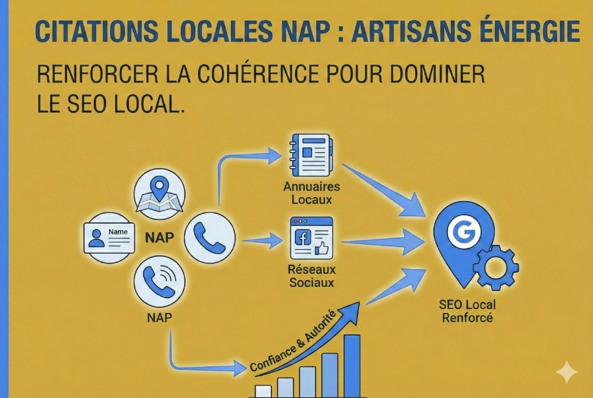 Citations locales & NAP pour artisans énergie : méthode + erreurs (cohérence, annuaires, duplication)