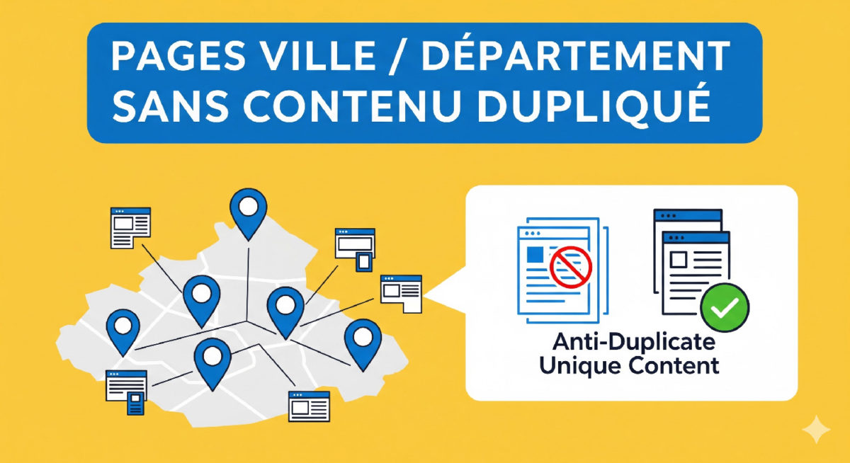 Le problème : beaucoup de sites produisent 30, 50 ou 200 pages locales… en changeant uniquement le nom de la ville. Résultat : contenu dupliqué, pages faibles, visibilité instable et conversion médiocre.