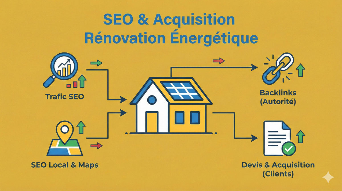 SEO & Acquisition Rénovation Énergétique : + de Devis (Google Maps, SEO Local, Backlinks)