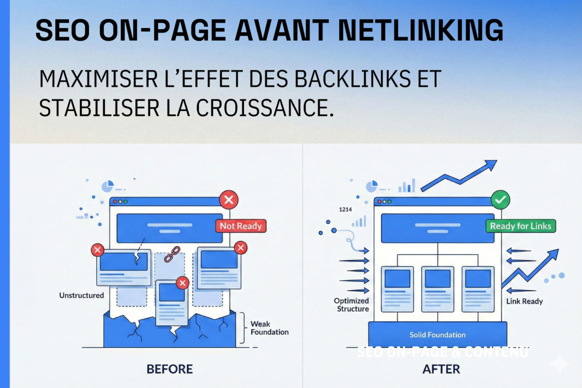 Le netlinking n’est pas un “pansement magique”. C’est un accélérateur. Si la base on-page est solide — contenu clair, structure logique, maillage efficace, expérience fluide — chaque lien envoyé aura plus d’impact et durera plus longtemps. Avant toute campagne, passez cette checklist, corrigez vos fondamentaux, puis seulement, investissez dans les liens.
